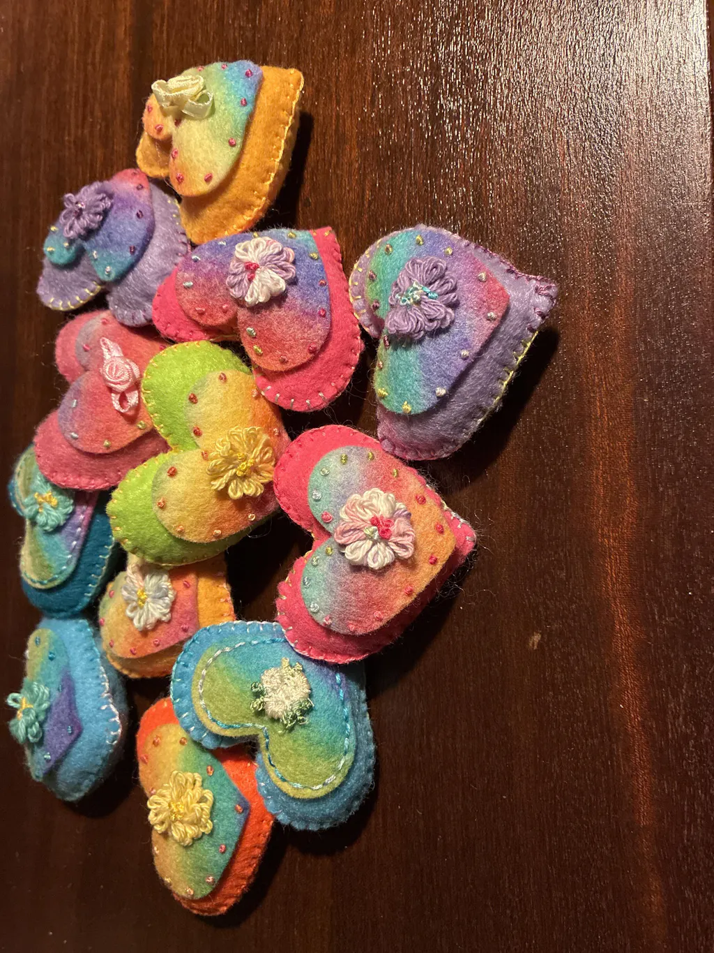 I love these pre-cut dyed hearts. The wool is so soft and supple and the colors are wonderful!